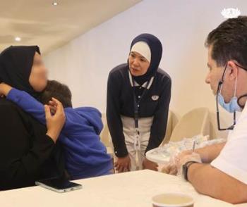 Tình nguyện viên Hội Phật giáo Từ Tế và nha sĩ tại phòng khám chăm sóc răng miệng miễn phí cho các gia đình di cư từ Gaza đến Jordan