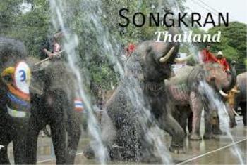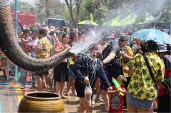 TH ÁI LAN: Bầy voi dẫn đầu lễ hội té nước và cầu nguyện trong lễ Songkan
