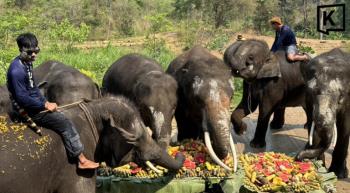 Ngoài ra, Sư trưởng Phra Khru Od của chùa Wat Chedi Luang đã tổ chức một bữa tiệc đặc biệt cho voi, tặng chúng các loại trái cây như chuối, mía, dưa hấu và dứa, tạo nên một bầu không khí vui tươi.
